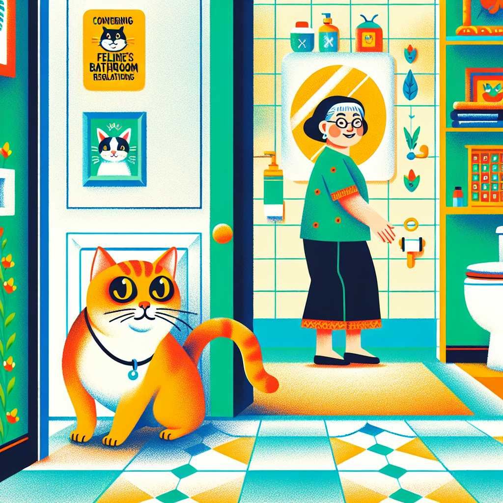 Išmokykite katę turėti savo vietą prie vonios: – Pasirinkite kilimėlį ar gultą prie atviros durų pusės. – Įveskite žodį ar gestą („vieta“), padėkite skanėstą, kai katė atsigula. – Kartokite trumpas sesijas, palaipsniui prašydami katės išbūti vis ilgiau. – Kai einate į tualetą, parodykite „vietą“, apdovanokite tylų laukimą.